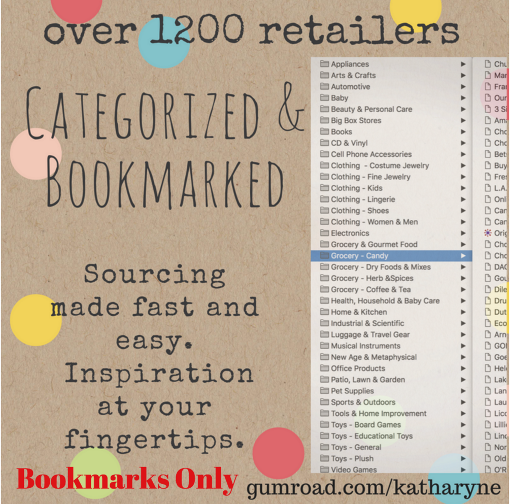 Giant retail sourcing directory - Bookmark Only Edition. Over 1200 online stores, categorized for Amazon sellers