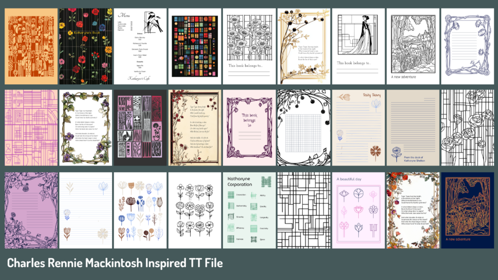 Charles Rennie Mackintosh inspired TT template file for Tangent Templates - book plates etc.