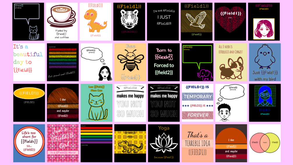 Note: While I have designed and curated everything in this package to abide by Merch's policies as far as possible, it is your responsibility to check through any product or listing you create to ensure it complies with the policies of Merch or any other platform you use, and to ensure it does not infringe on anyone else's intellectual property. More info/links to help with this in the included instruction booklet.
