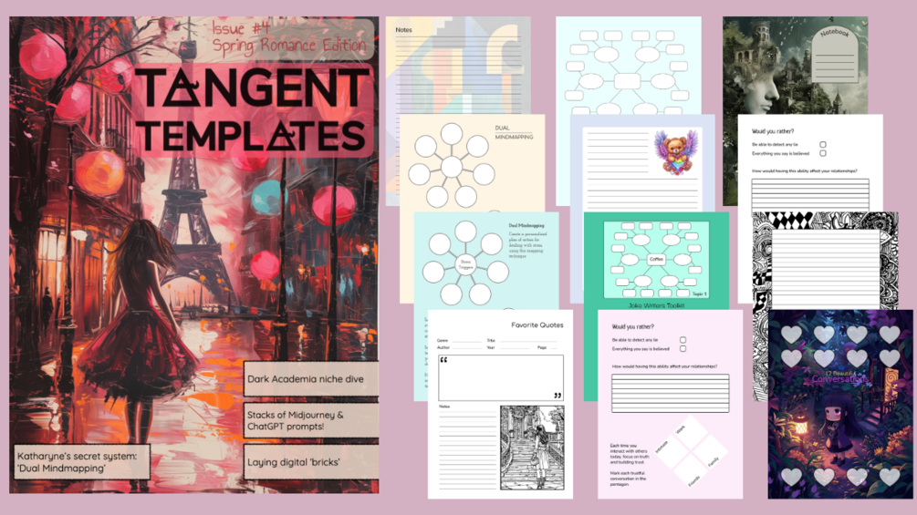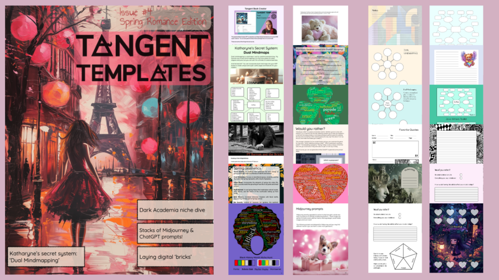 The paid bonus version of this magazine includes exclusive access to our brand new Resolution Directory - a browser based collection of over 200 example book plans based on popular New Year Resolutions, plus a GORGEOUS Prompt Guide for 18 art styles, themed around Dark Academia. Plus over 180 clip art images. All these goodies are only available with the Bonus Tangezine #4 for just $20!